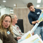 Donderdag 12 februari j.l. hebben wij, de leden vrouwen ondernemersnetwerk SWOT, mooie inzichten verworven in ons gedrag onder leiding van Herman en Frank Koot van Buro Koorts. Op basis van de door de dames van tevoren ingevulde vragenlijst is er een landkaart gemaakt van het gedrag en je communicatie eigenschappen, de zogenoemde: Personal Map van Mapstell. Daar is in te zien hoe je gedrag is, hoe anderen dat zien en ervaren en de valkuilen die je hebt. Het geeft soms verrassende inzichten en helpt je om effectiever te werk te gaan! Hoe introverte en extraverte mensen elkaar zien en de vooroordelen die daaraan kleven leverden hilarische momenten op. Een grote landkaart met gedragstypen was de basis en er werd heel wat gelachen om de vooroordelen die we allemaal hebben en hoe daar mee om te gaan!
