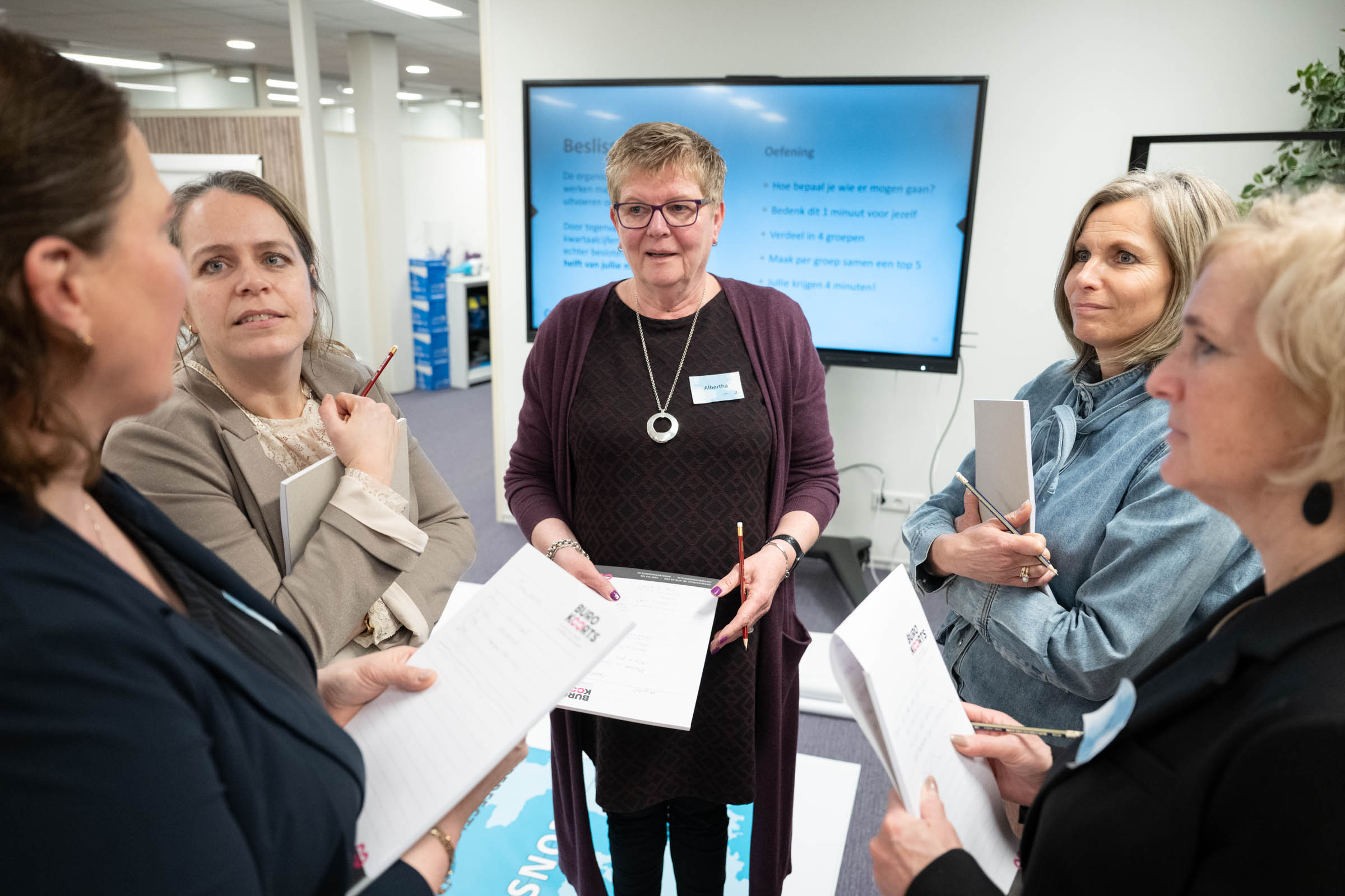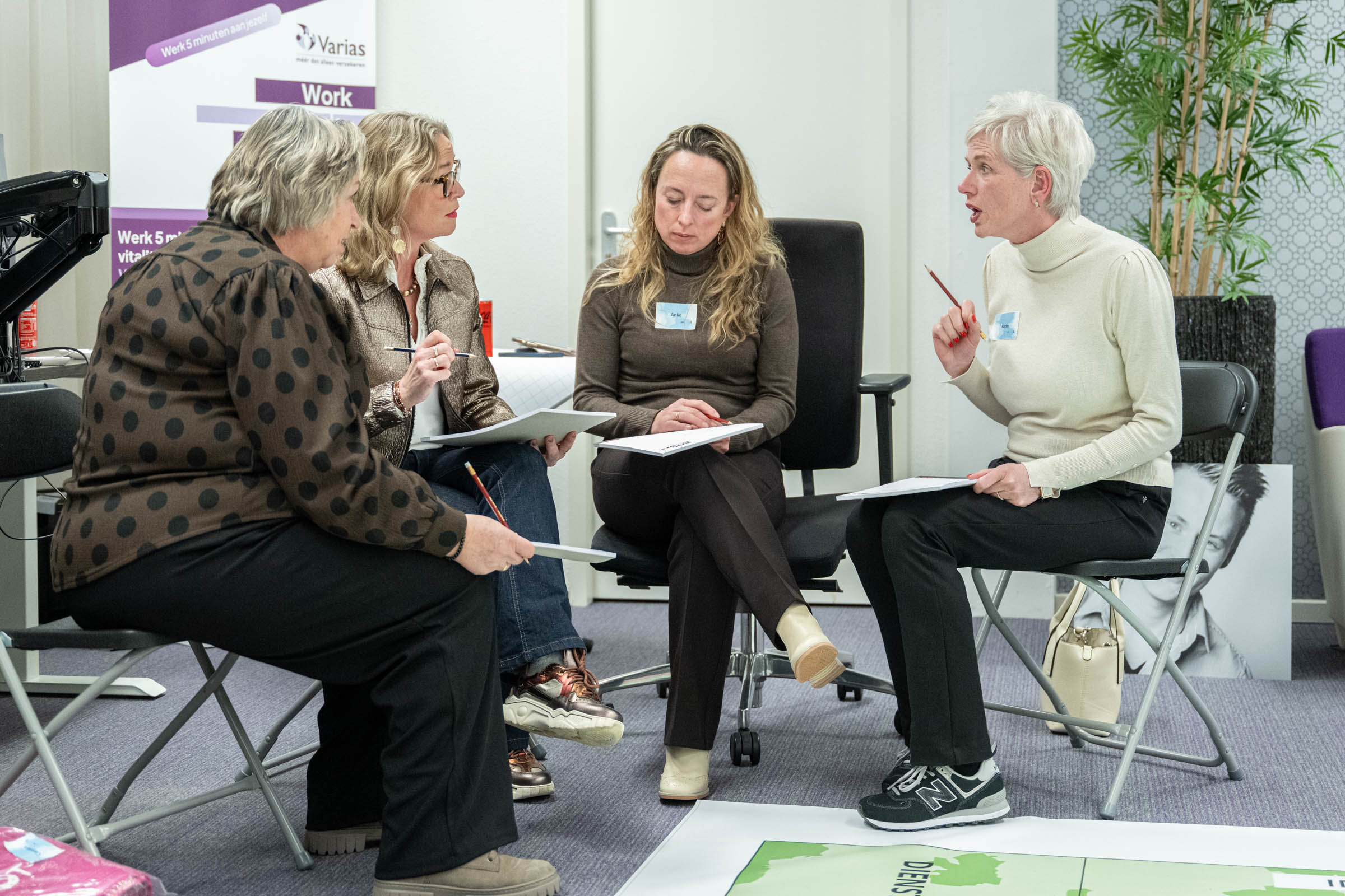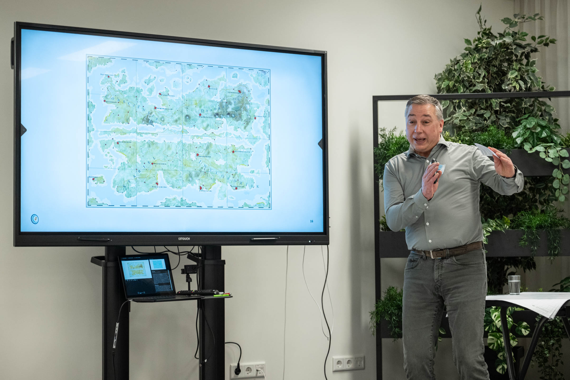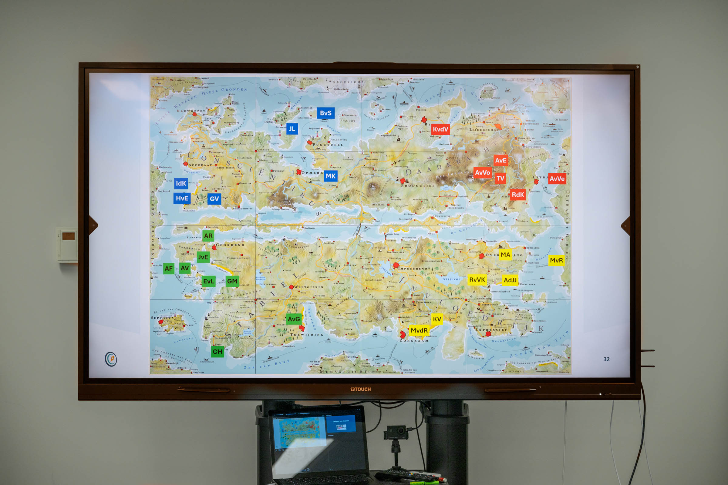 Donderdag 12 februari j.l. hebben wij, de leden vrouwen ondernemersnetwerk SWOT, mooie inzichten verworven in ons gedrag onder leiding van Herman en Frank Koot van Buro Koorts. Op basis van de door de dames van tevoren ingevulde vragenlijst is er een landkaart gemaakt van het gedrag en je communicatie eigenschappen, de zogenoemde: Personal Map van Mapstell. Daar is in te zien hoe je gedrag is, hoe anderen dat zien en ervaren en de valkuilen die je hebt. Het geeft soms verrassende inzichten en helpt je om effectiever te werk te gaan! Hoe introverte en extraverte mensen elkaar zien en de vooroordelen die daaraan kleven leverden hilarische momenten op. Een grote landkaart met gedragstypen was de basis en er werd heel wat gelachen om de vooroordelen die we allemaal hebben en hoe daar mee om te gaan!