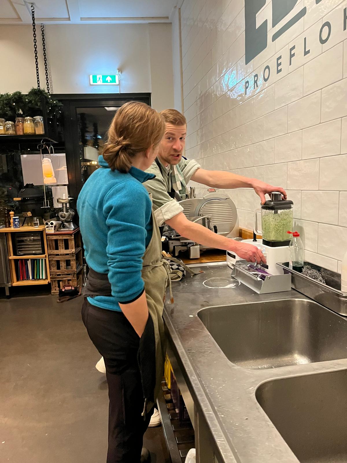 Rond 16.30 zijn we gestart met een welkomstdrankje- en woord. Daarna gingen we koken met zijn allen, dit zorgde voor een fijne sfeer waar veel werd gepraat en gelachen.